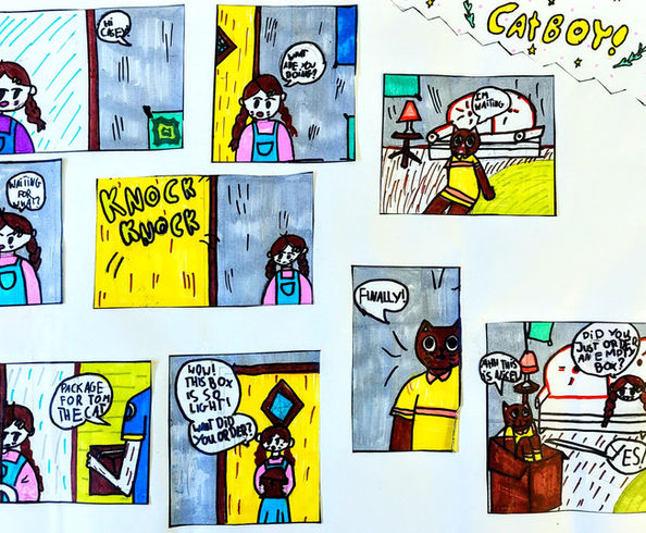 Projekty komiksów wykonane na zajęciach przez uczniów klas szóstych.